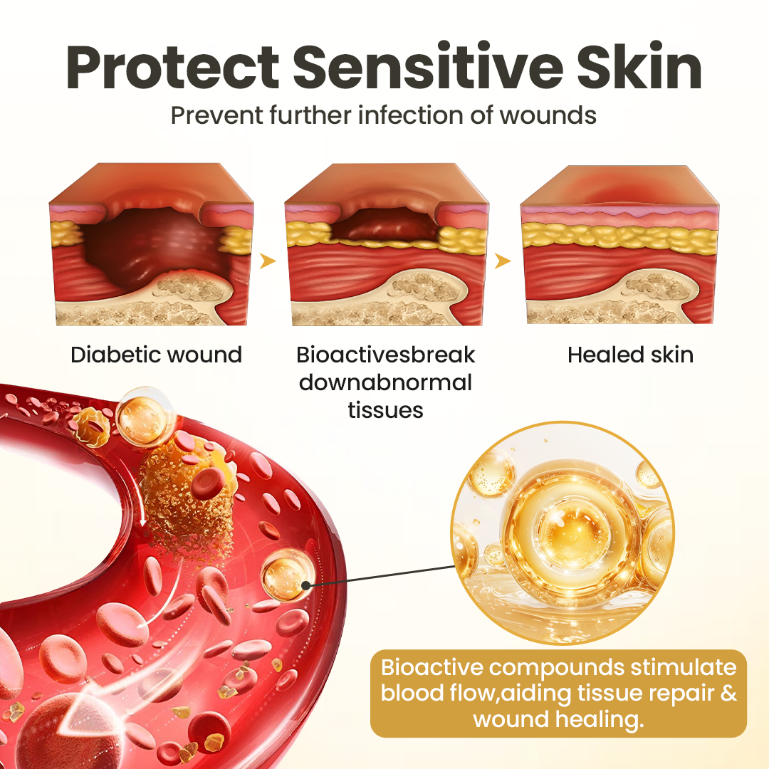 Extensive clinical observation among individuals with fragile foot skin has shown that combining botanical support with a breathable protective barrier can improve daily wound-care outcomes—especially when used consistently as part of routine foot care.