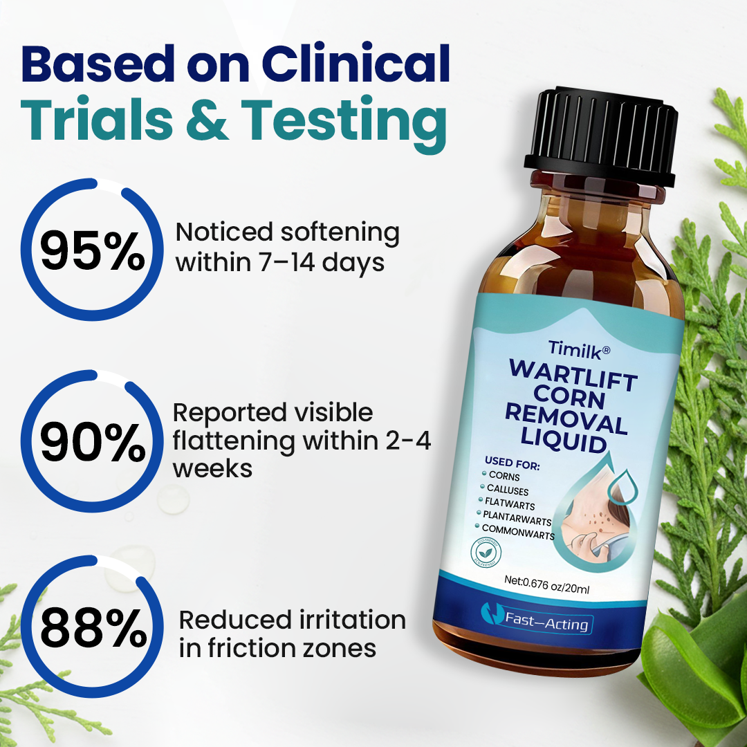 Timilk® WartLift Corn Removal Liquid is dermatologist-reviewed, safety-tested, and manufactured in an FDA-registered facility to ensure consistent quality. Trusted nationwide, over 90% report softer, smoother skin within weeks. Gentle, effective, and designed for long-lasting improvement.